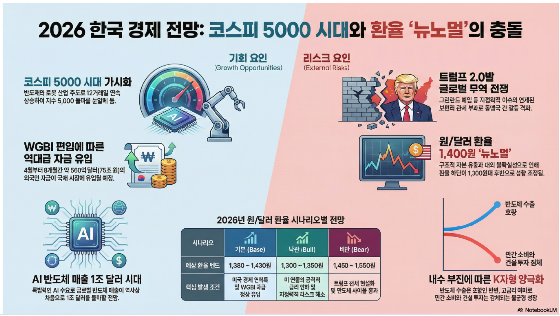 서학개미의 해외 투자 지속과 지정학적 리스크가 환율 하단을 견고하게 지지하고 있어 당분간 고환율 압박이 지속될 것으로 보입니다.