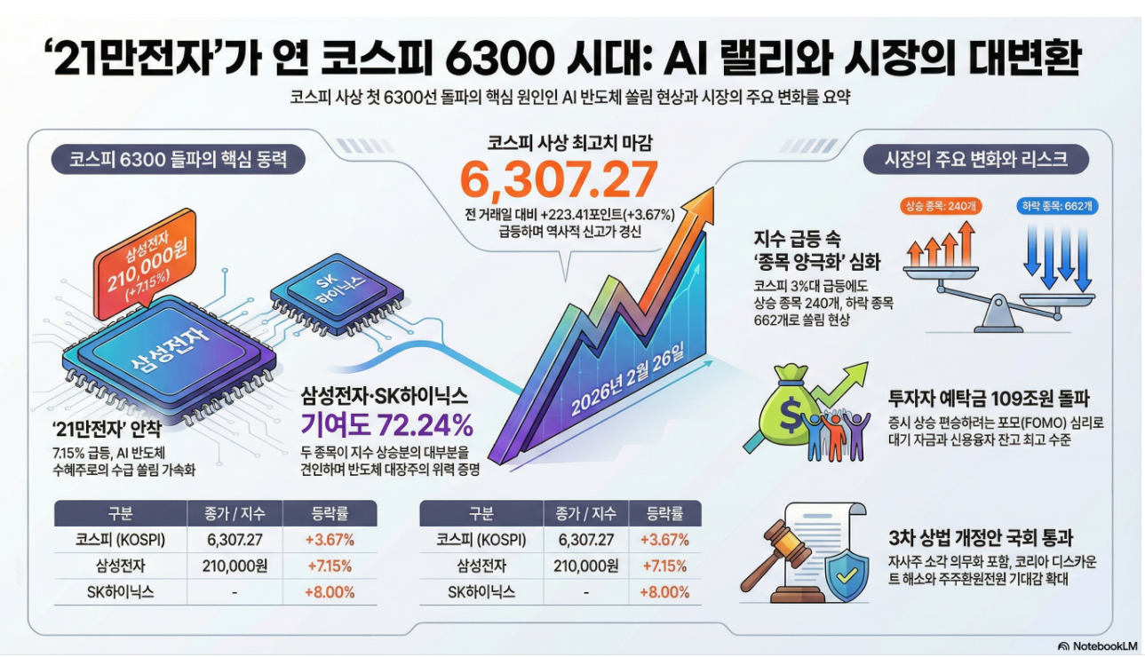 1. 지수 현황 : 파죽지세 코스피 6,300 돌파 속 '극심한 양극화'
